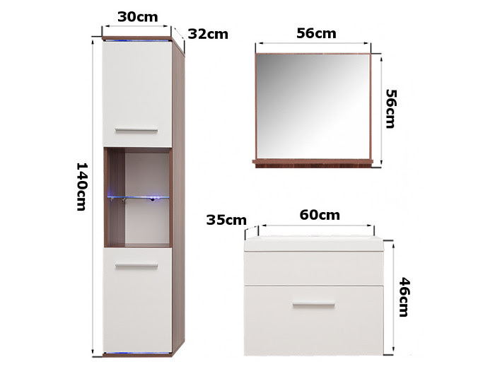 •  1x Waschtischunterschrank mit waschtisch (HxBxT): 46x60x35 cm