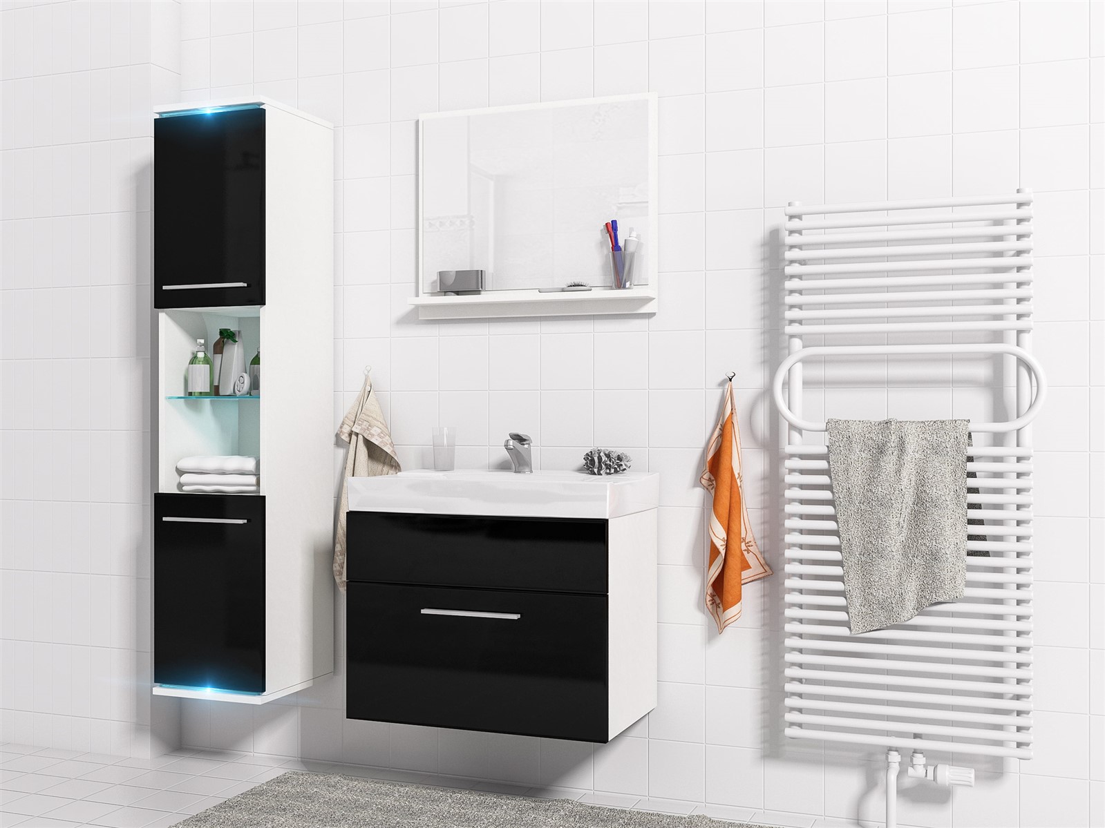 •  Badezimmer Set -Topi - Weiß / Schwarz Hochglanz