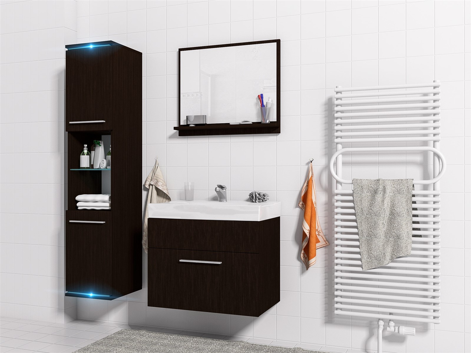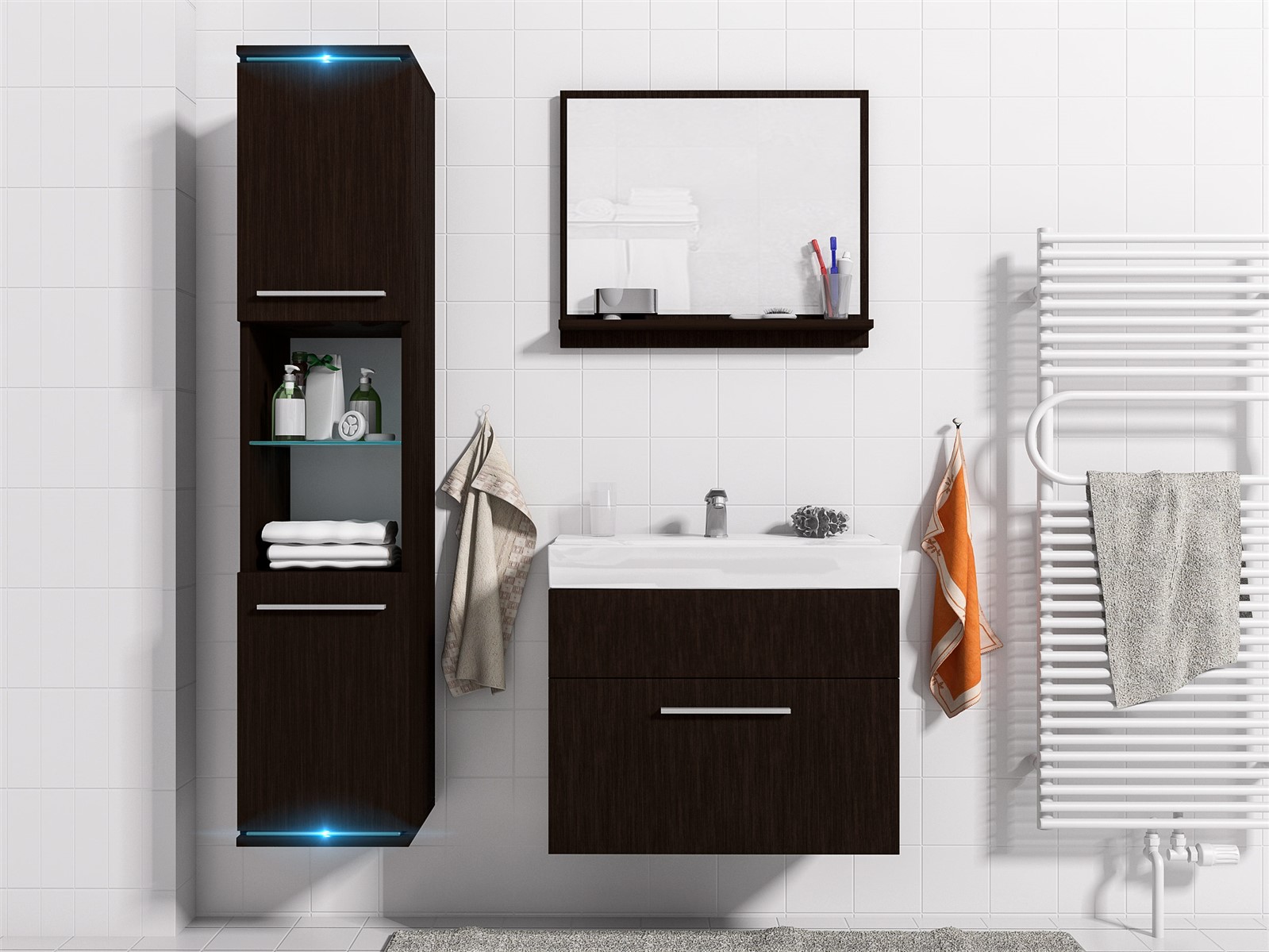 Weiterführende Links zu "Badmöbel Set 4-Tlg Wenge matt TOPI inkl.Waschtisch inkl.LED"