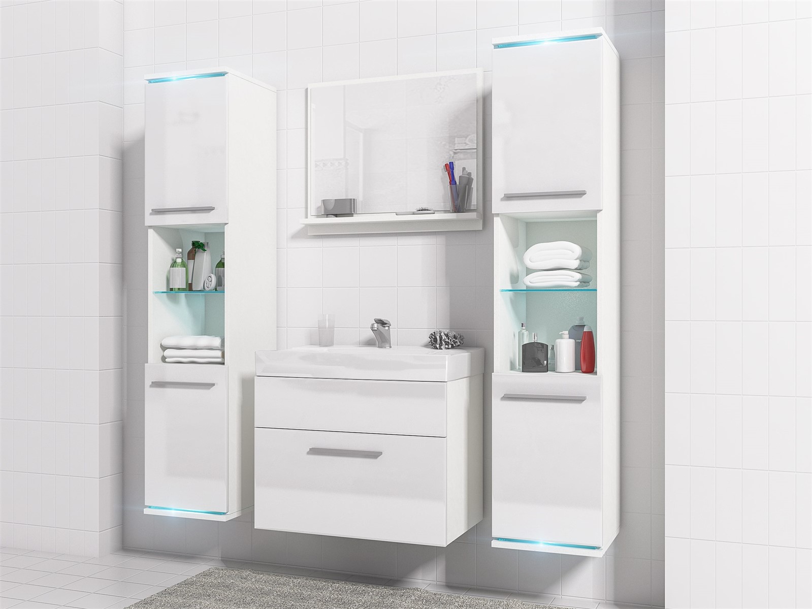 •  Badezimmer Set -Topline - Hochglanz Weiß / inkl. LED Beleuchtung