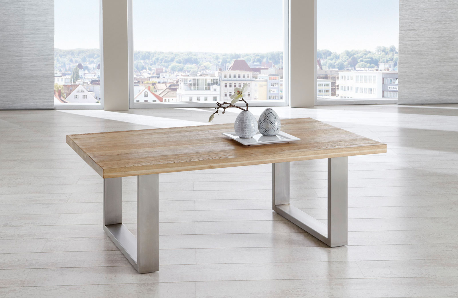 Couchtisch Buche oder Eiche massiv natur lackiert oder geölt, durchgehende Lamelle gebürstet. Lieferbar in 110x70 und 120x80 cm. Dieser wunderschöne Tisch zeichnet sich durch seine massive Bauweise und einer starken Tischplatte von 40 mm aus.