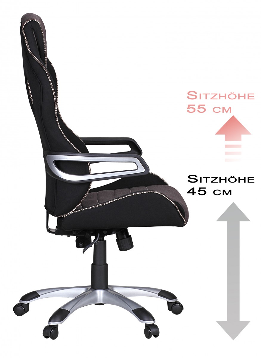 Drehstuhl Bürostuhl Chefsessel BOLD Stoff- Schwarz / Hellgrau