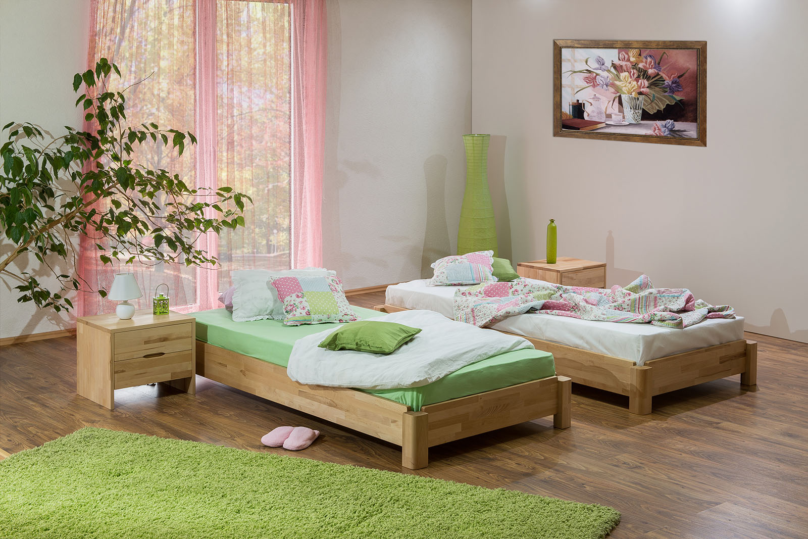 Die hochwertige Verarbeitung des Massivholzes verspricht eine lange Freude an Ihren neuen Betten, ausgestattet mit abgerundeten Stollenfüßen machen diese Betten nicht nur optisch etwas her, sondern sind inklusive Rollrost auch ein Hammer in Preis-Leistung.