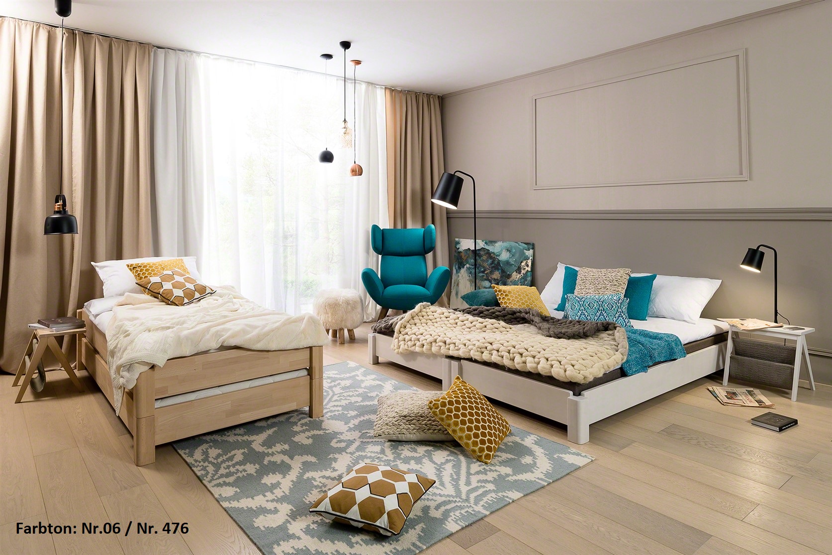 Weiterführende Links zu "Gästebett Stapelbett 2er Set - MOBY -90x200 Buche massiv inkl.Rollrost"