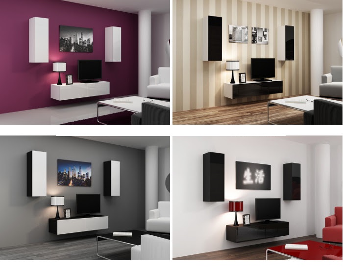 Mediawand Wohnwand 3 tlg - SENTIC 19 - Schwarz / Weiss Hochglanz