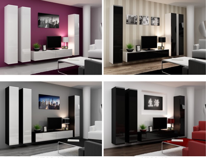 Mediawand Wohnwand 4 tlg - SENTIC 13 - Weiss Hochglanz
