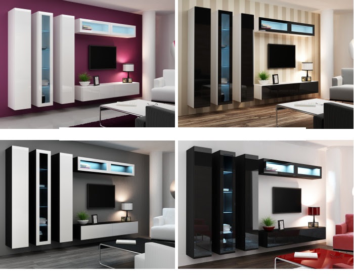 Mediawand Wohnwand 6 tlg - SENTIC 18 - Schwarz Hochglanz