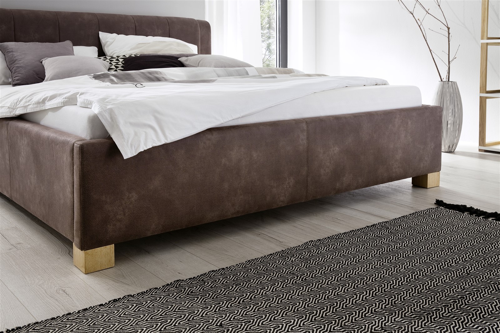 Polsterbett Bett Doppelbett Tagesbett - ROM - 180x200 cm / Stoffbezug Vintage Dunkelbraun