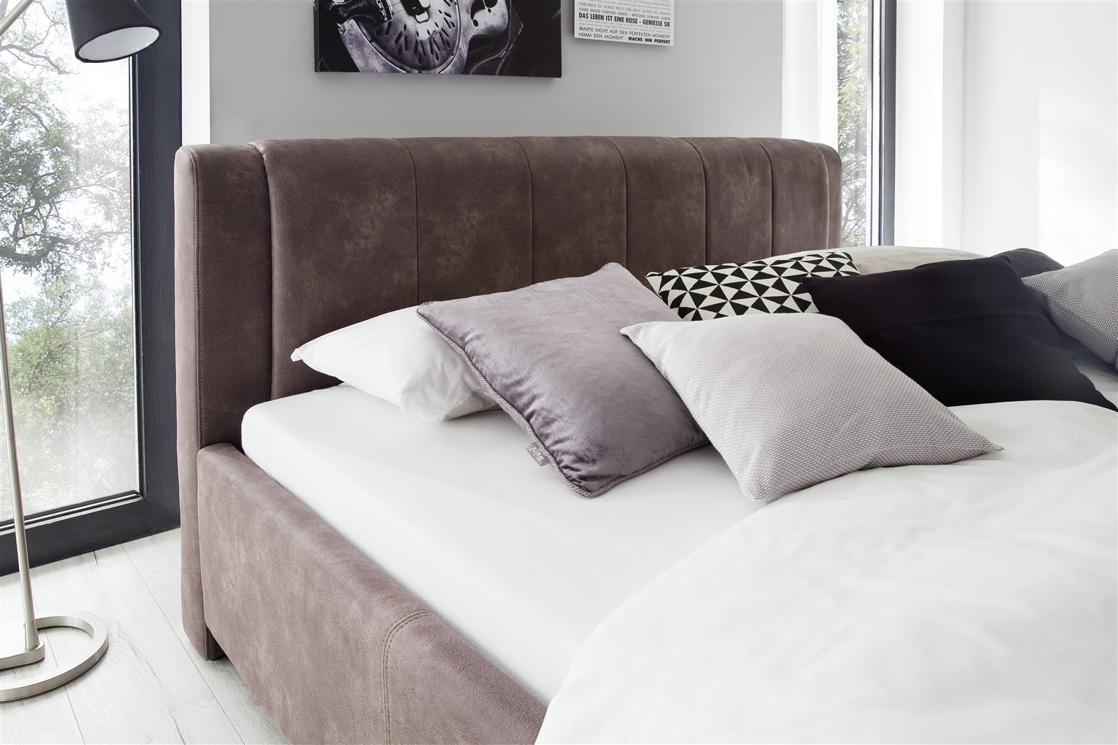 Genießen Sie einen ruhigen Schlaf und starte Sie erholt in%0d%0aden Tag. Moderne Steppnähte im Kopfteil lockern die Optik auf und setzen%0d%0aAkzente.