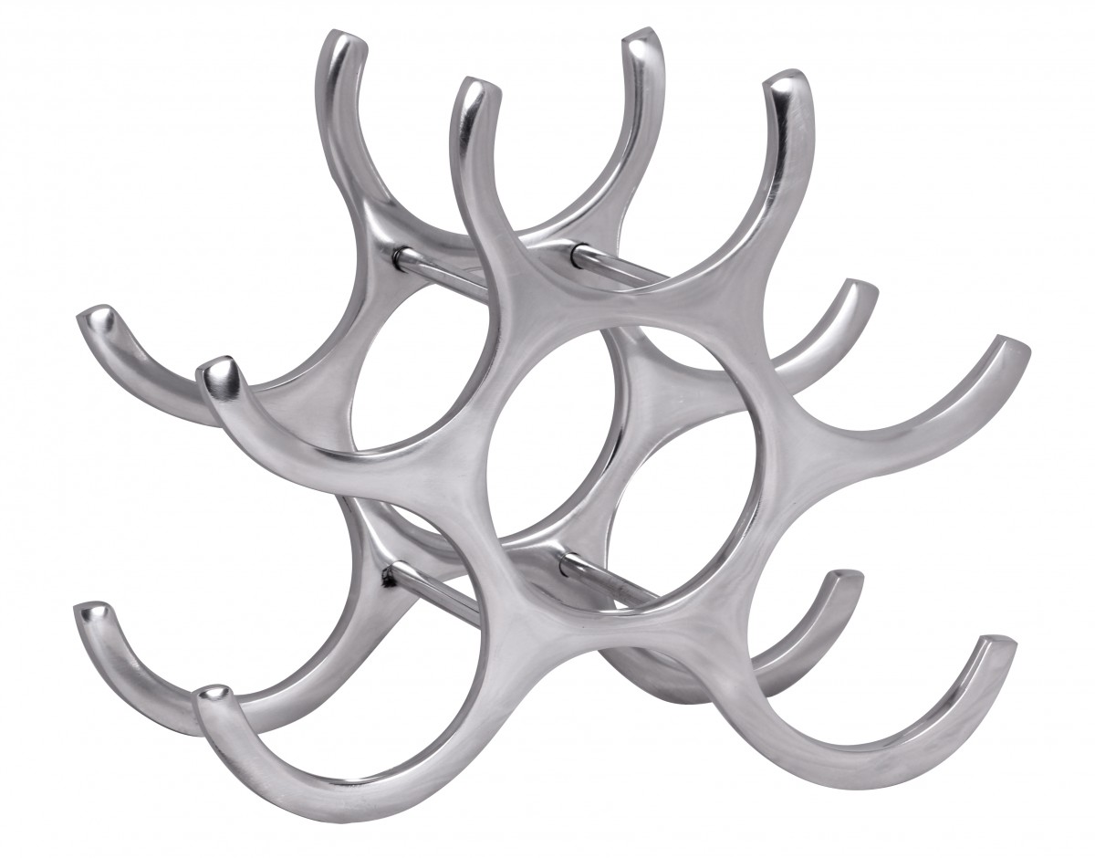 Weinregal Design 24 cm für 6 Flaschen Aluminium Silber